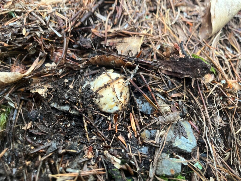 頭か茎かわからない、見事なマツタケ(栂茸)です。